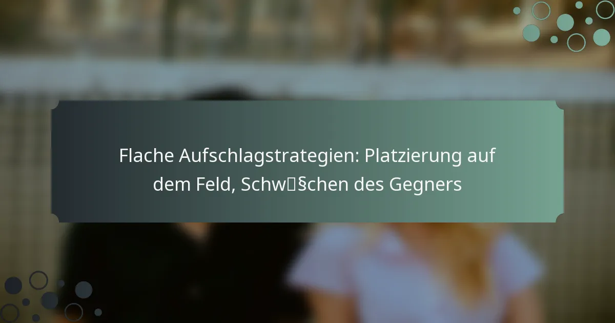 Effektive Strategien zur Ausführung eines flachen Aufschlags konzentrieren sich auf optimale Platzierung, die Identifizierung von Schwächen des Gegners und Anpassungen in Geschwindigkeit und Platzierung. Ein flacher Aufschlag ist durch minimalen Spin und eine schnelle Flugbahn gekennzeichnet, was es für Gegner schwierig macht, ihn zurückzugeben. Das Beherrschen dieses Aufschlags erfordert ein Verständnis seiner Mechanik und das Üben spezifischer Techniken.